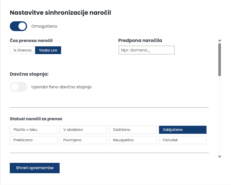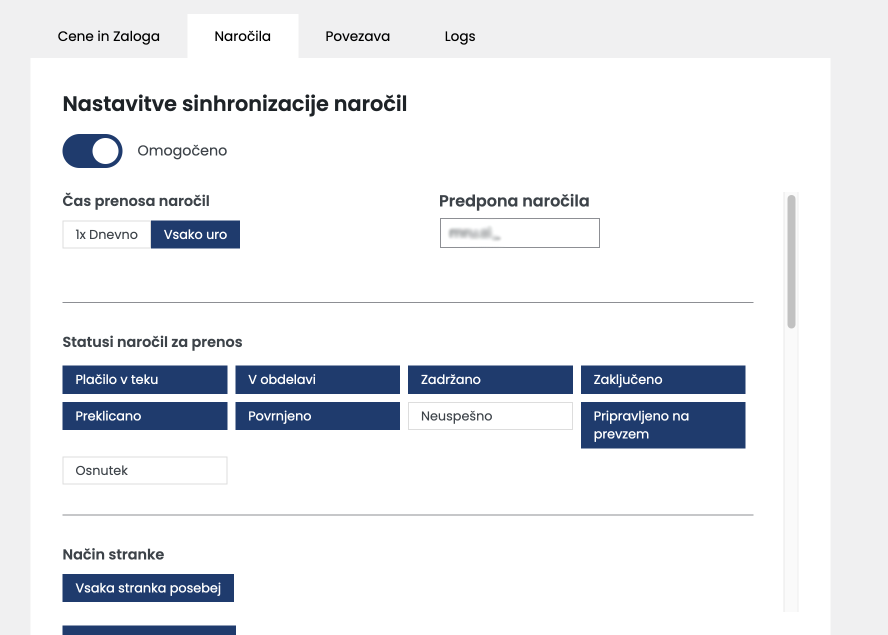 Naš vtičnik omogoča nemoteno sinhronizacijo cen in podatkov o zalogi. Uporabniki lahko nastavijo pogostost sinhronizacije glede na svoje potrebe, z možnostmi za urne posodobitve ali dnevno posodobitev ob želenem času. Da bi še dodatno povečali prilagodljivost, ponujamo možnost sinhronizacije samo cene, zaloge ali obojega, odvisno od preference uporabnika.